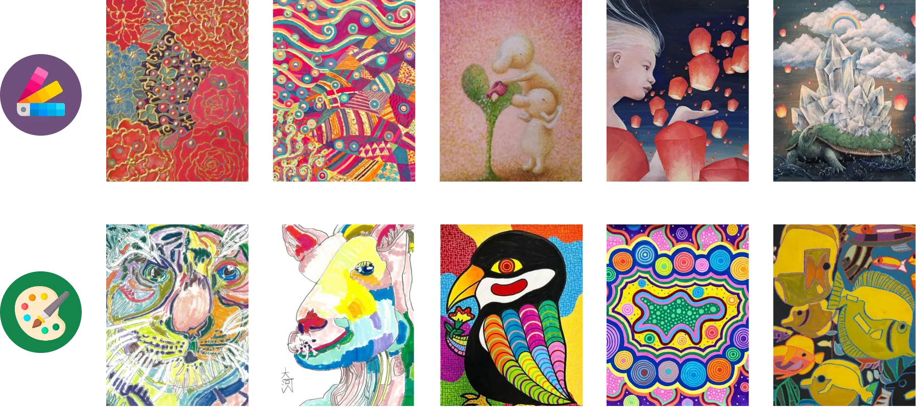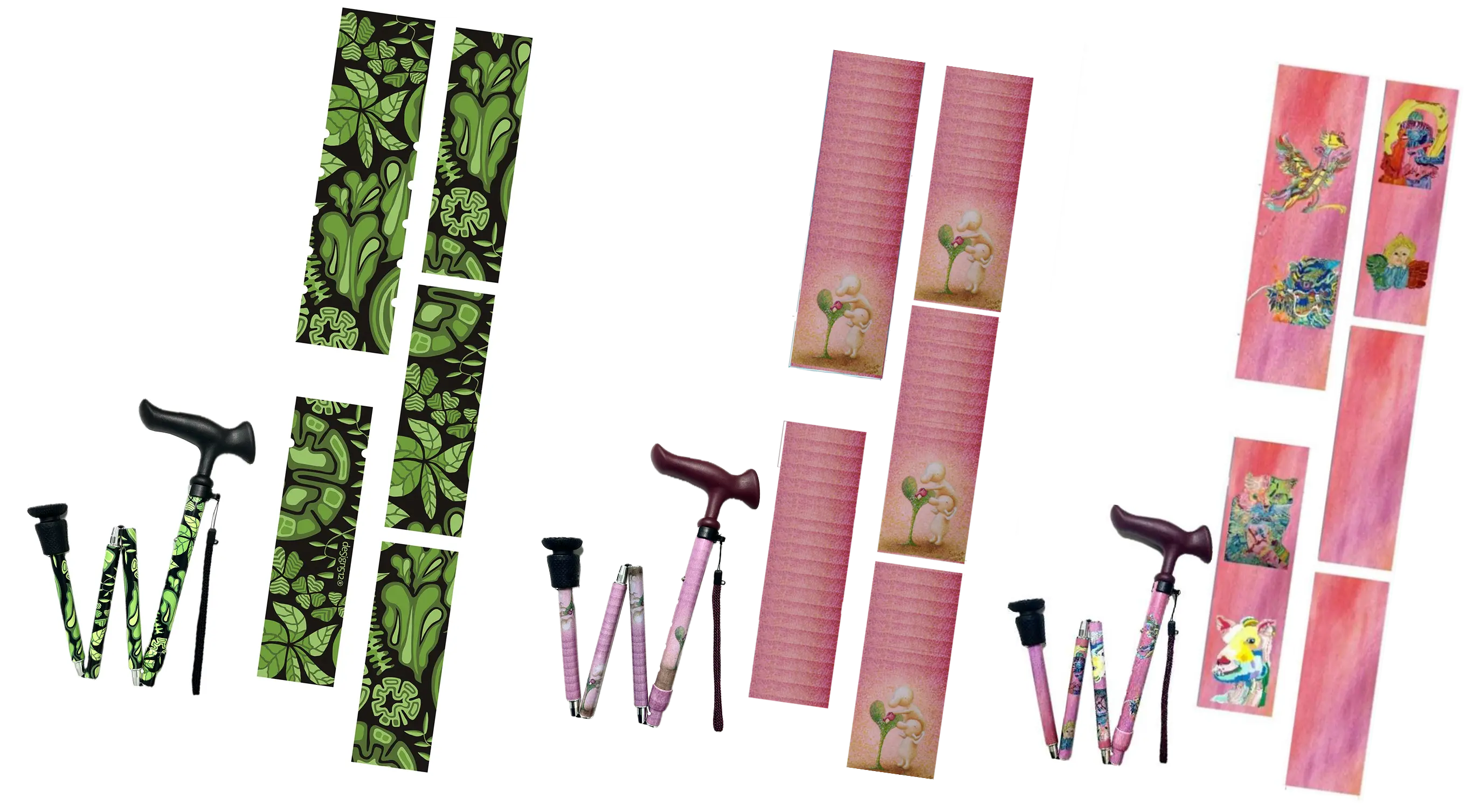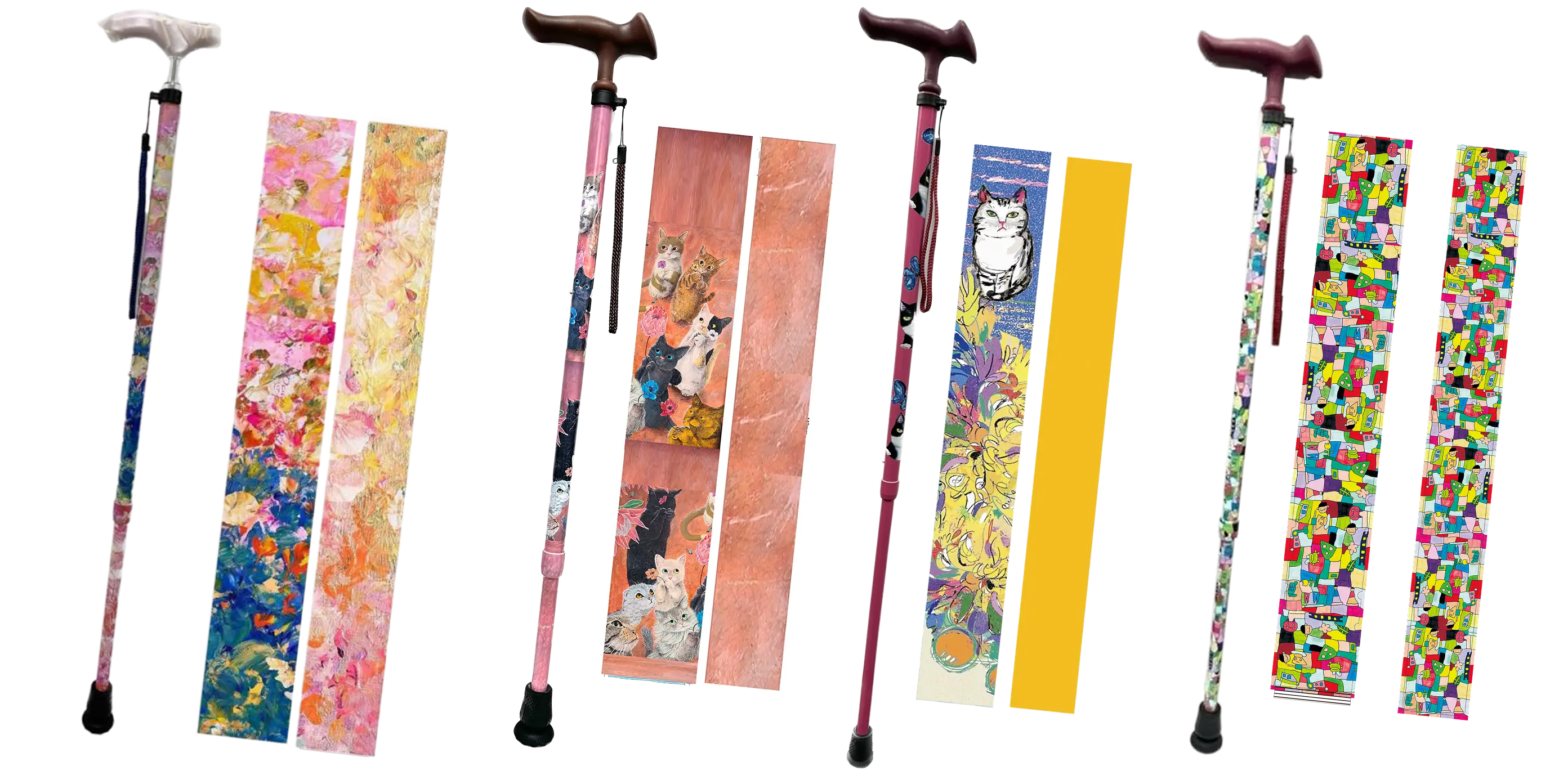 主に自閉症の大人や子供たちが描いたアートをステッキにしています。