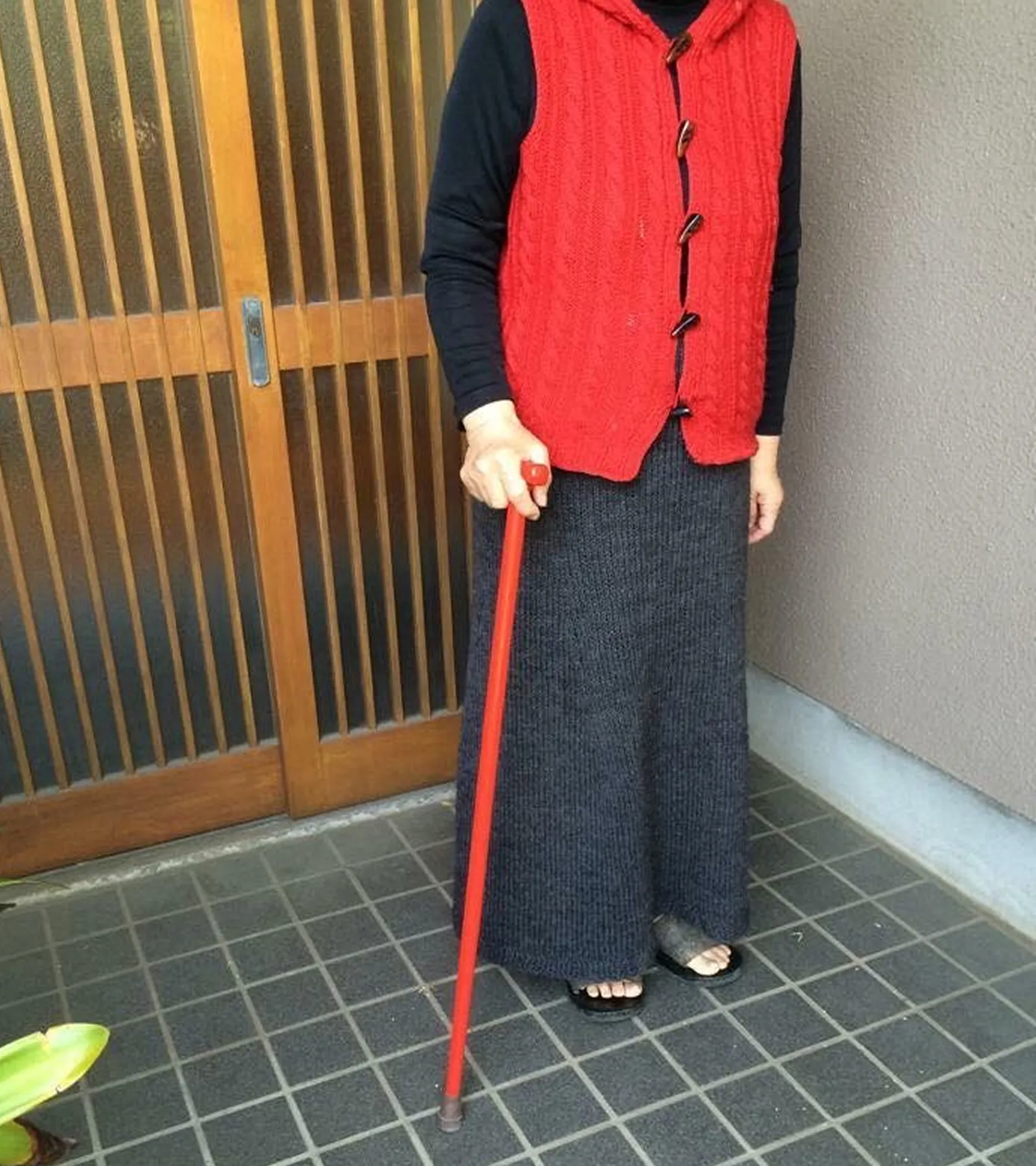 今ではこの真っ赤なステッキとお揃いの靴や服を着て頻繁に出掛けるようになり、一人で喫茶店や映画、そして友達と旅行にも行くなど元気な生活が続いています。
