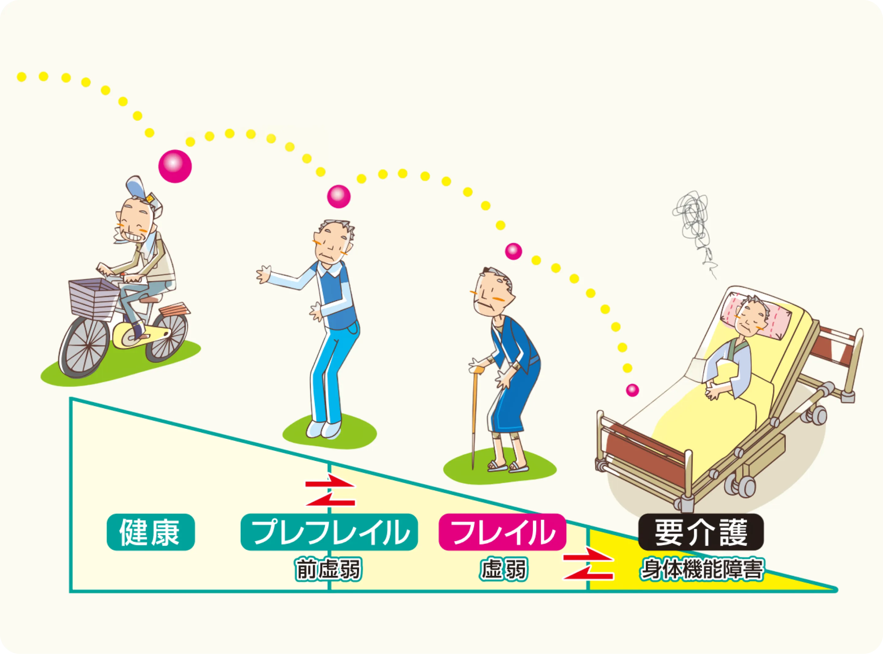 フレイル・プレフレイル予防には「しっかり歩いて!」ことが大切でサルコペニア(筋肉減弱症)予防にもなります。